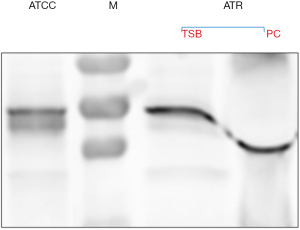 In September 2020, an elderly male patient suffering from acute promyelocytic leukemia (APL) was transfused with an irradiated 5-day old buffy coat platelet pool at a Canadian hospital as part of the treatment for coagulopathy likely related to APL. At approximately five minutes into the transfusion, his heart and respiratory rate increased and his blood pressure dropped from baseline (Table 1); the transfusion was immediately terminated. Forty minutes post-transfusion, the patient developed an onset of severe chest pain, shortness of breath, chills/rigors, nausea/vomiting, transient hypoxemia, and fever, with changes in his vital signs as shown in Table 1. The patient was initially admitted with febrile neutropenia but was afebrile some days prior to the reaction. The patient did not receive any medication prior to PC transfusion. Following the reaction, analgesics and nitroglycerine spray were administered. Once the patient’s chest pain was resolved, blood samples were taken for microbiological investigation and Tazocin was administered. A day after the septic reaction, the patient was afebrile and additional blood products were infused with no reported reactions. A computed tomography (CT) chest scan revealed patient improvement; Caspofungin and Cefazolin were added as supplementary treatment. PCs are screened for bacterial contamination at Canadian Blood Services with the automated BACT/ALERT culture system using a large volume delayed sampling algorithm as described by Ramirez-Arcos et al. (6). The BACT/ALERT testing result of the PC implicated in this case, after 7 days of bottle incubation, was negative. All procedures performed in this study were in accordance with the ethical standards of the institutional and/or national research committee(s) and with the Helsinki Declaration (as revised in 2013). Written informed consent was obtained from the patient.