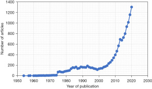 Articles on PRP were first published in the 1950s and a PubMed search reveals that there has been an exponential growth in interest and research in the past seven decades (Figure 1). Publications on PRP are available in almost every subspecialty of medicine and include original articles, systematic reviews, and meta-analyses. Select articles were chosen from the literature search and are reviewed here. Online searches of Google and Google Scholar were also performed to guide selected review of popular PRP treatments, as these are search engines that are readily accessible to consumers of PRP. Only English articles were included. The goal is to provide an overview of PRP composition and preparations, some current applications, gaps in knowledge, and areas for future investigation and development.